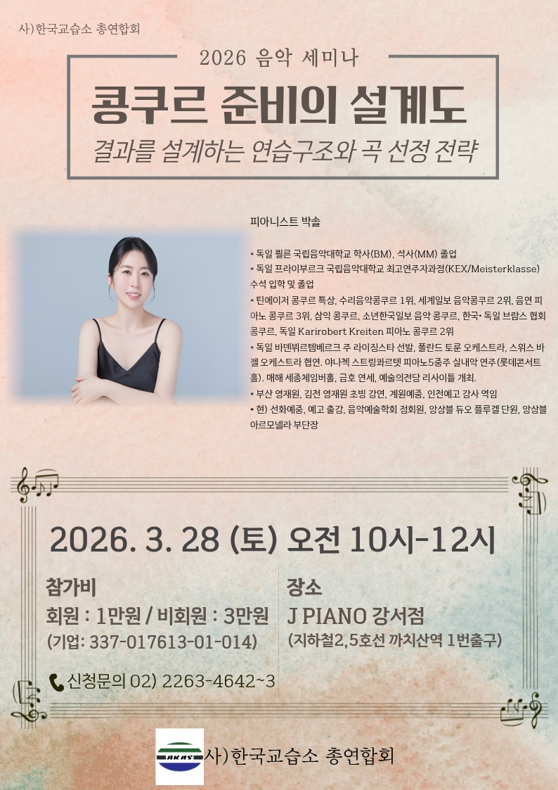 (사)한국교습소총연합회 음악분과위원회에서는 다음과 같이
